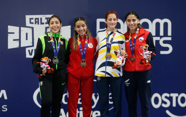 CALI, VALLEY, COLUMBIA, Tuesday, December 7th, 2021 – the first ever Junior Pan American Games were held from November 25 to December 5, in Cali and Valle, Columbia. Yamina Lahyanssa won gold in the female -50 kg kumite category, covering this historic event with success. This medal guarantees her an invitation to the 2023 Pan American Games in Santiago, Chile.